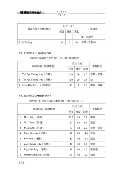 1 Tha Pyu Chaing Jetty(浮橋) 120 20 6.0 漁業、石油
