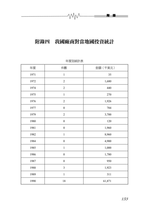 附錄四 我國廠商對當地國投資統計