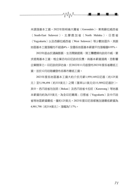 企業競爭力。印尼政府評估後,於2022年11月底發布2023年度各省最低工
