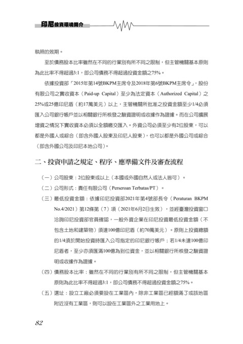 (三)最低投資金額:依據印尼投資部2021年第4號部長令(Peraturan BKPM