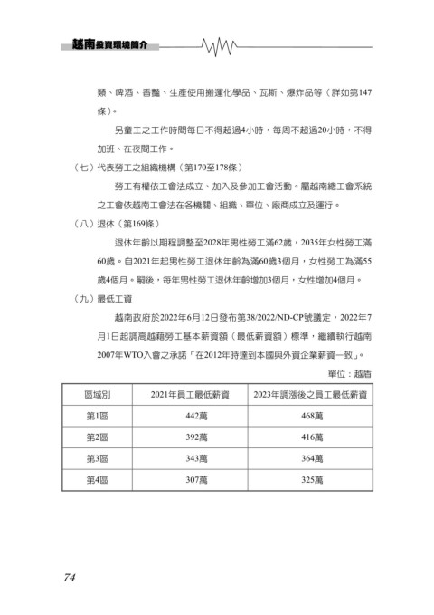 月1日起調高越藉勞工基本薪資額(最低薪資額)標準,繼續執行越南