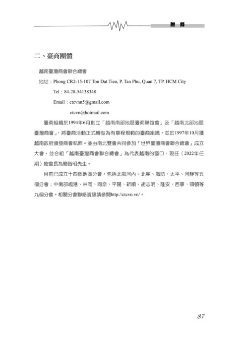 大會,並合組「越南臺灣商會聯合總會」為代表越南的窗口,現任(2022年任