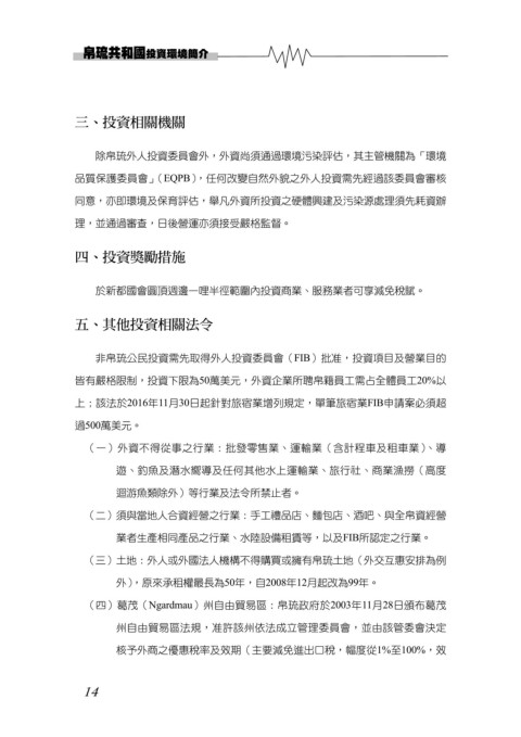 除帛琉外人投資委員會外,外資尚須通過環境污染評估,其主管機關為「環境
