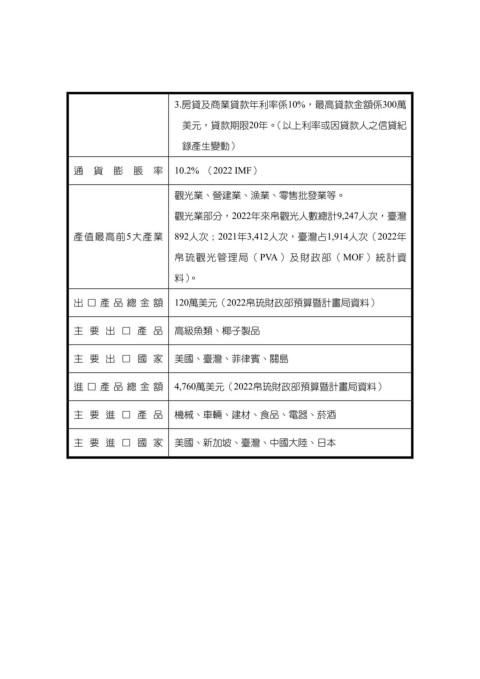 出口產品總金額 120萬美元(2022帛琉財政部預算暨計畫局資料)