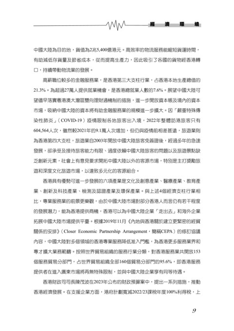 香港經濟發展。在支援企業方面,港府計劃寬減2022/23課稅年度100%利得稅,上