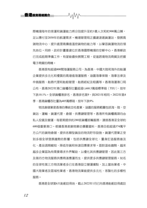 的全球性第三方物流業者多已在香港設立營運據點,加上當地業者、中