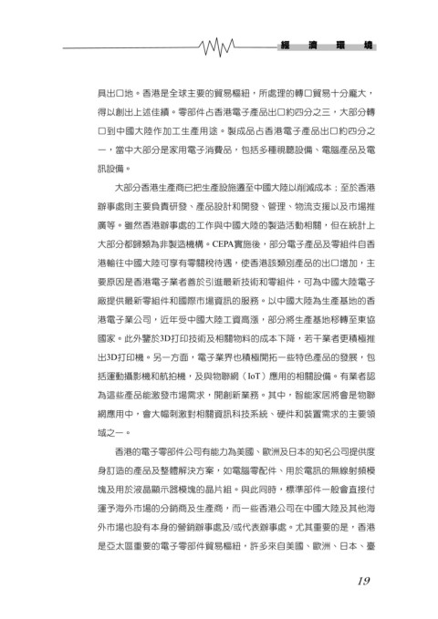 大部分都歸類為非製造機構。CEPA實施後,部分電子產品及零組件自香