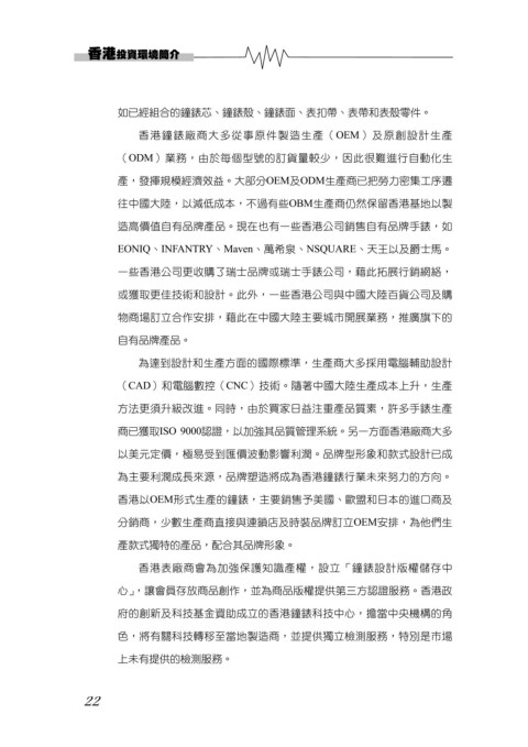 香港鐘錶廠商大多從事原件製造生產(OEM)及原創設計生產