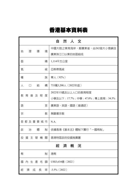 香港基本資料表