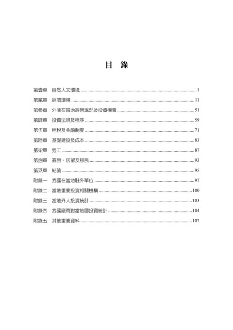 附錄四 我國廠商對當地國投資統計 ......................................................................... 104