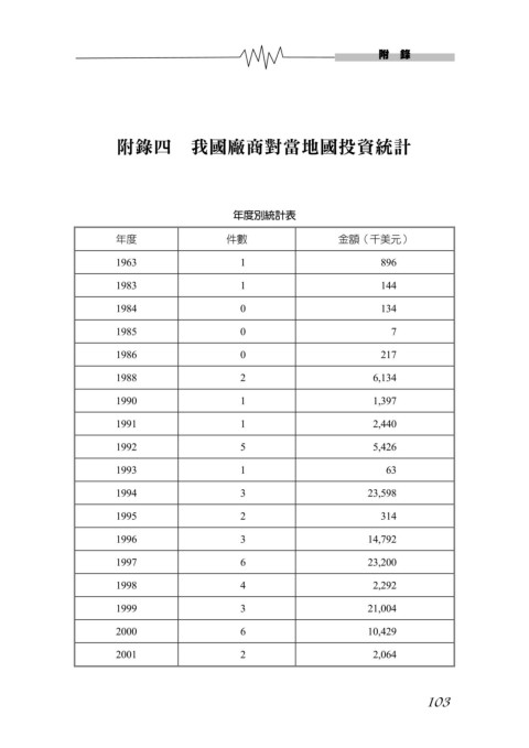附錄四 我國廠商對當地國投資統計