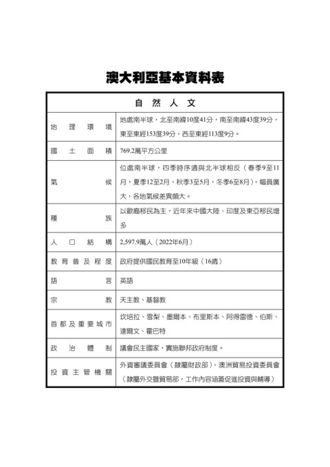 政 治 體 制 議會民主國家,實施聯邦政府制度。