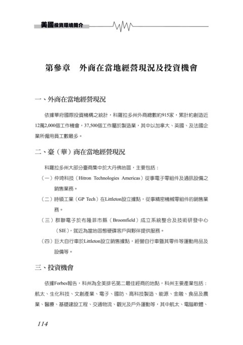 依據華府國際投資機構之統計,科羅拉多州外商總數約915家,累計約創造近