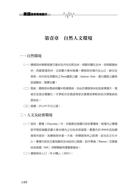 (一)首府:夏陽(Cheyenne)市,名稱源自美國印弟安夏陽族,惟境內之夏陽