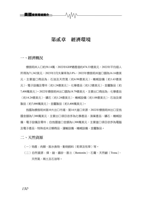 所得為71,342美元,2023年2月失業率為3.8%,2022年懷俄明州進口額為16.16億美
