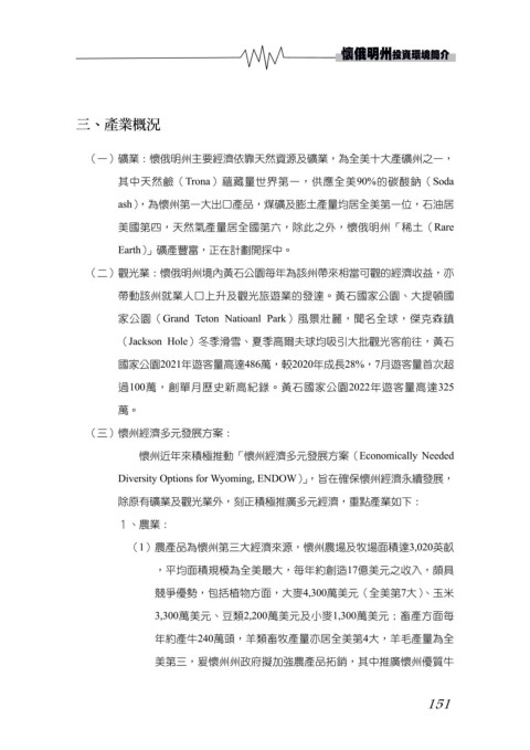 (一)礦業:懷俄明州主要經濟依靠天然資源及礦業,為全美十大產礦州之一,