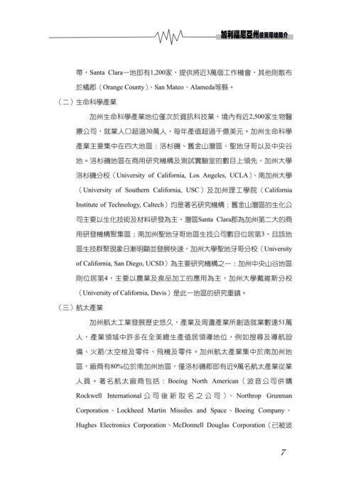 備、火箭/太空梭及零件、飛機及零件。加州航太產業集中於南加州地