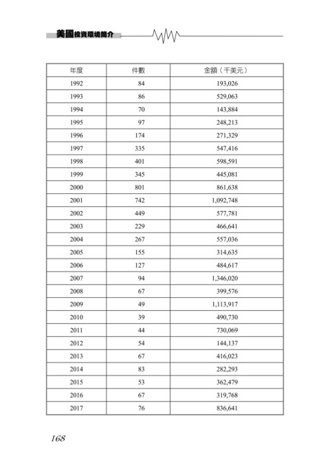 年度 件數 金額(千美元)