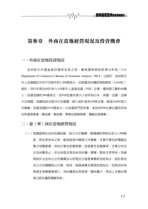 加州吸引外國直接投資居全美之冠,據美國商務部經濟分析局(U.S.