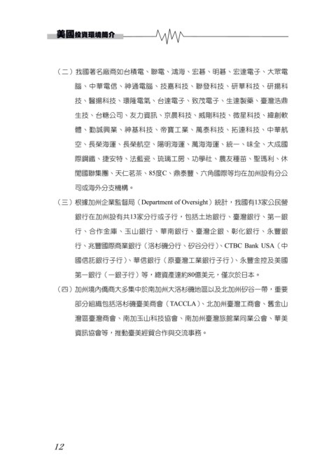 (三)根據加州企業監督局(Department of Oversight)統計,我國有13家公民營