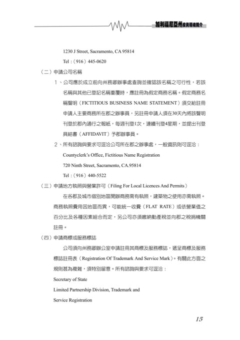 1、公司應於成立前向州務卿辦事處查詢並確認該名稱之可行性,若該