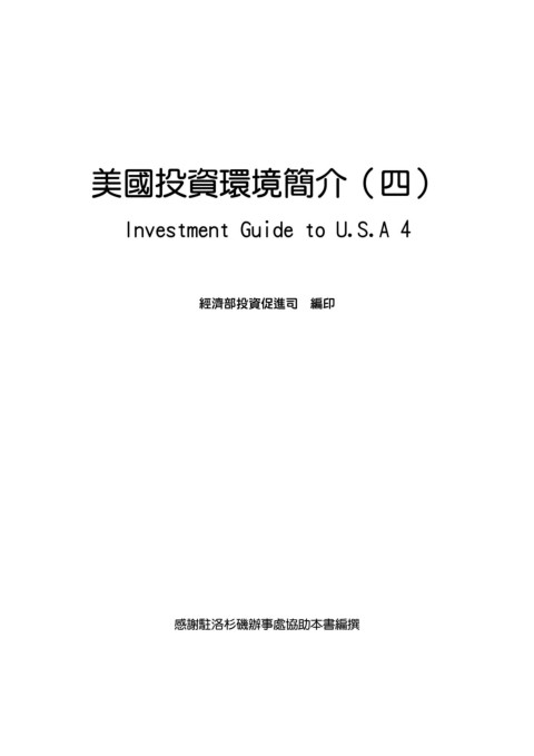 美國投資環境簡介(四) Investment Guide to U.S.A 4 經濟部投資促進司 編印 感謝駐洛杉磯辦事處協助本書編撰