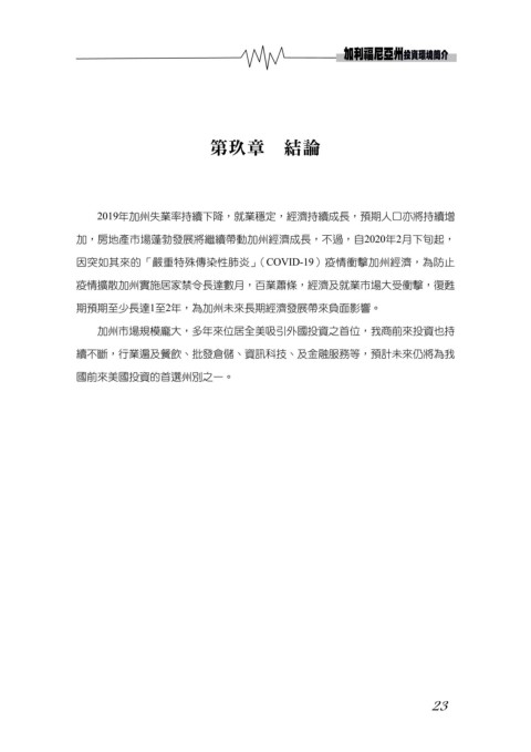 加州市場規模龐大,多年來位居全美吸引外國投資之首位,我商前來投資也持