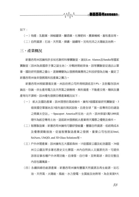 (四)永續與綠色能源產業:新墨西哥州擁有豐富天然資源及再生能源,如石
