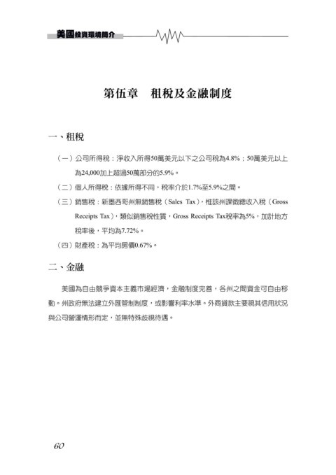 (三)銷售稅:新墨西哥州無銷售稅(Sales Tax),惟該州課徵總收入稅(Gross