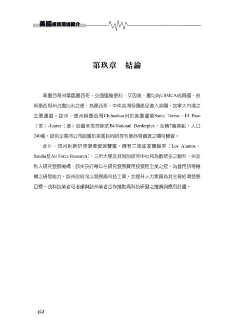 目標。我科技業者可考慮與該州業者合作推動高科技研發之推廣與應用計畫。