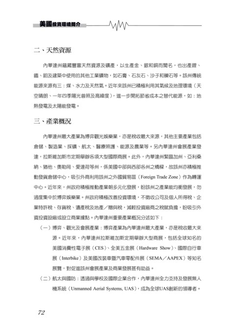 資投資設廠或設立商業據點。內華達州重要產業概況分述如下: