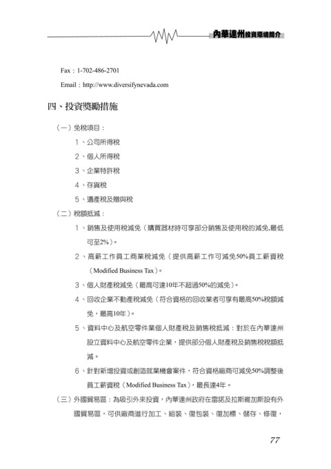(三)外國貿易區:為吸引外來投資,內華達州政府在雷諾及拉斯維加斯設有外