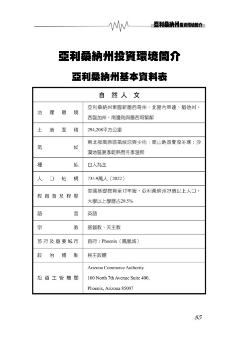 亞利桑納州投資環境簡介