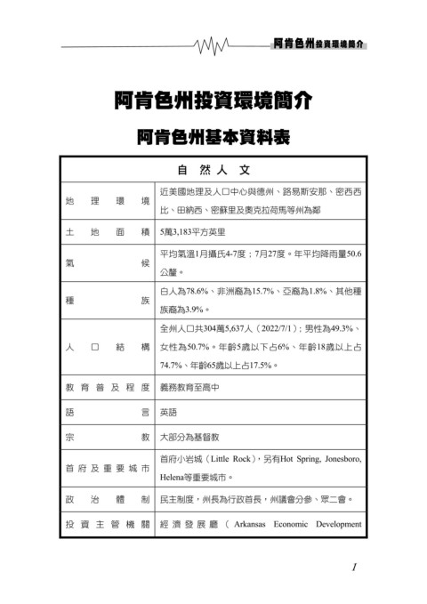 投資主管機關 經濟發展廳( Arkansas Economic Development