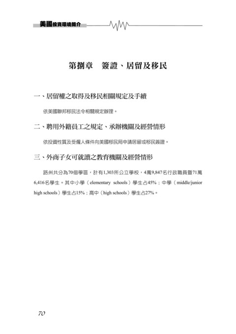 依投資性質及受僱人條件向美國移民局申請居留或移民簽證。