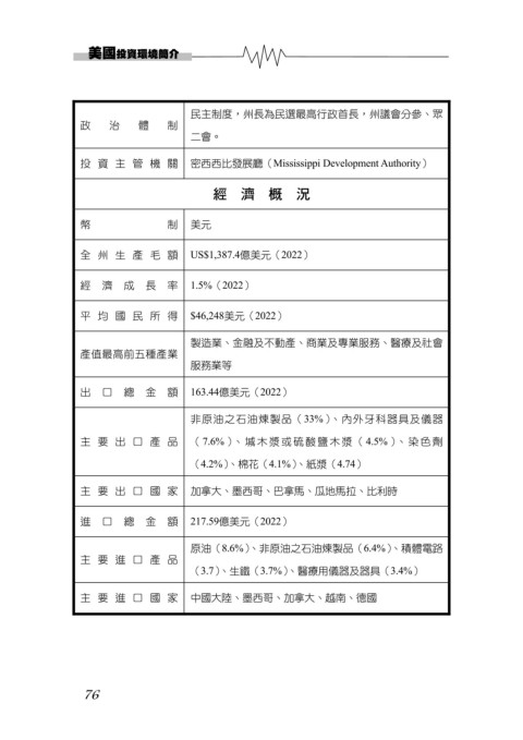 投資主管機關 密西西比發展廳(Mississippi Development Authority)