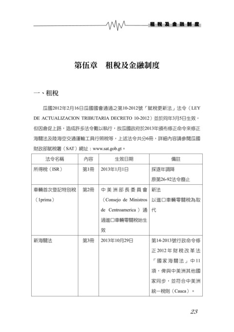 海關法及陸海空交通運輸工具行照稅等,上述法令共分6冊,詳細內容請參閱瓜國