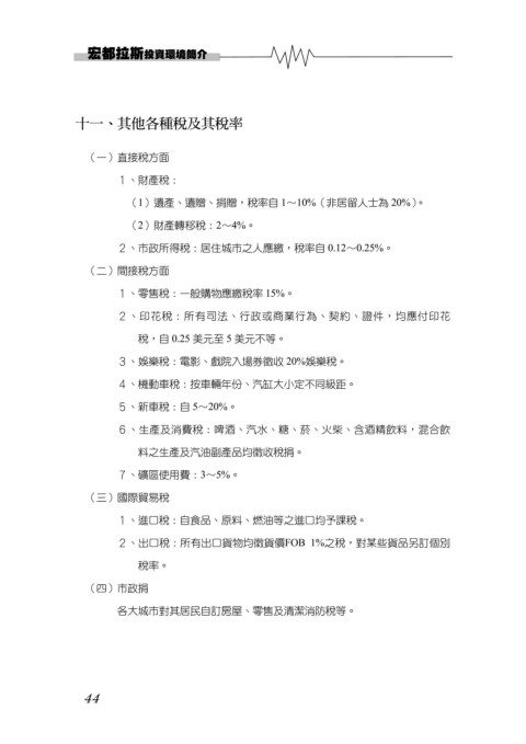 2、出口稅:所有出口貨物均徵貨價FOB 1%之稅,對某些貨品另訂個別