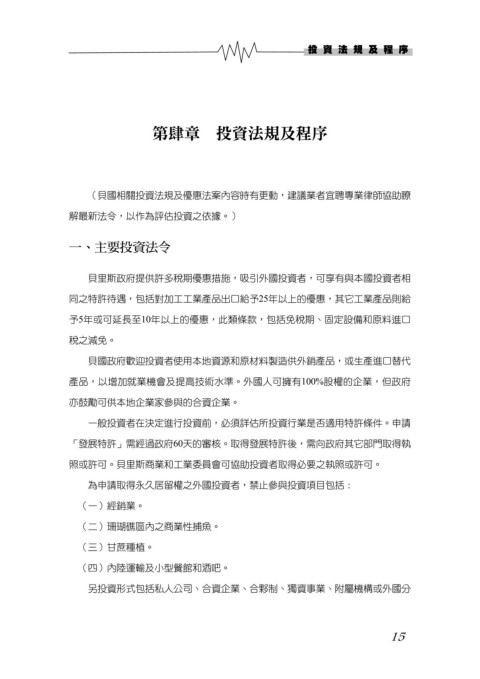 (貝國相關投資法規及優惠法案內容時有更動,建議業者宜聘專業律師協助瞭