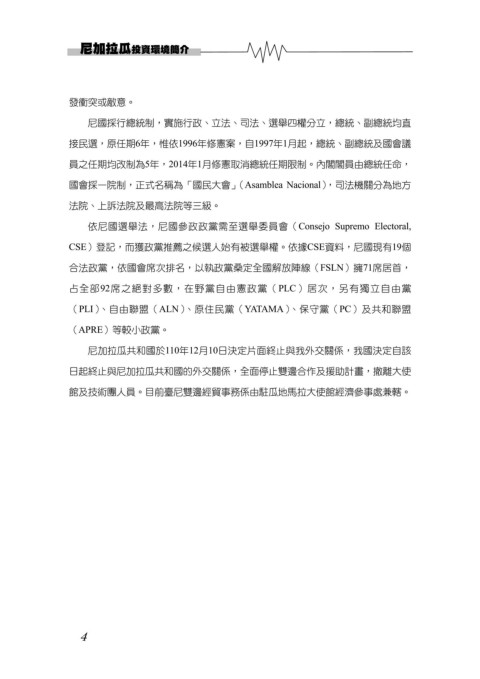 館及技術團人員。目前臺尼雙邊經貿事務係由駐瓜地馬拉大使館經濟參事處兼轄。
