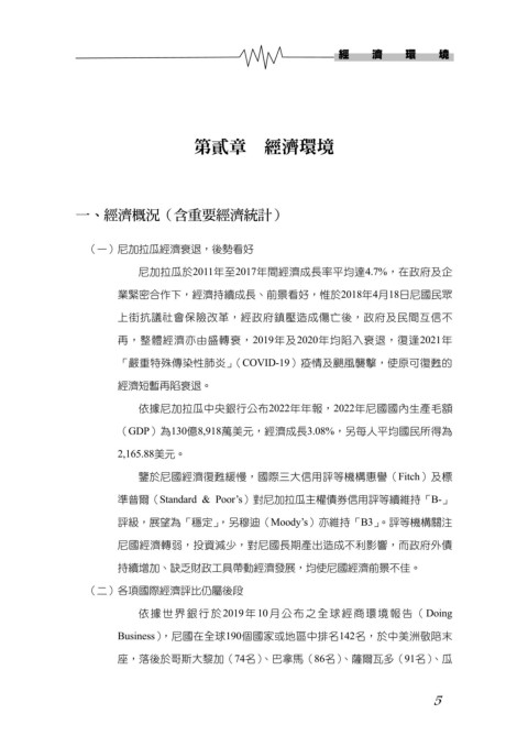 鑒於尼國經濟復甦緩慢,國際三大信用評等機構惠譽(Fitch)及標