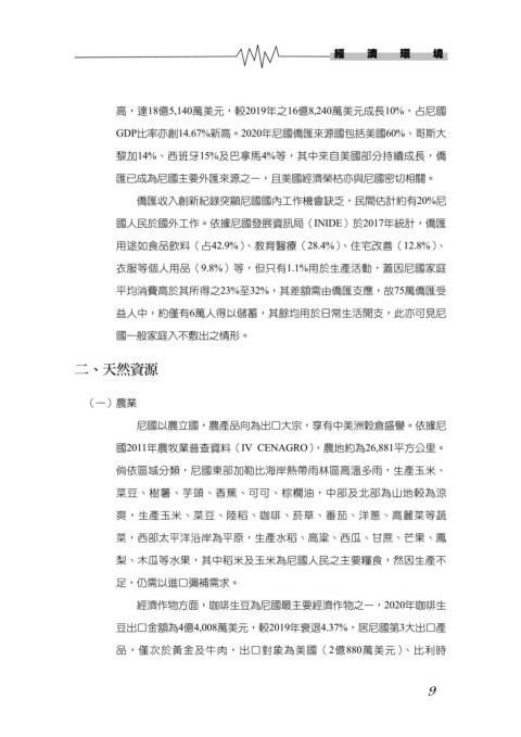 尼國以農立國,農產品向為出口大宗,享有中美洲穀倉盛譽。依據尼