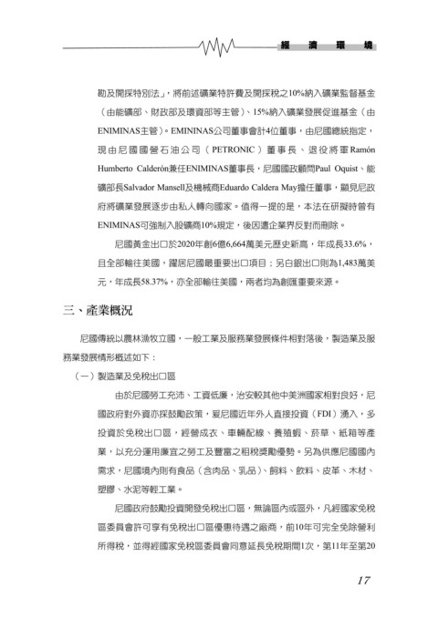 需求,尼國境內則有食品(含肉品、乳品)、飼料、飲料、皮革、木材、