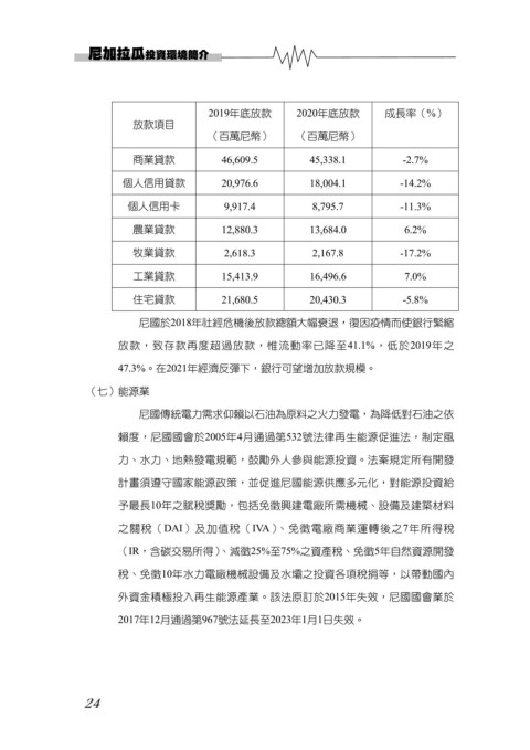尼國於2018年社經危機後放款總額大幅衰退,復因疫情而使銀行緊縮
