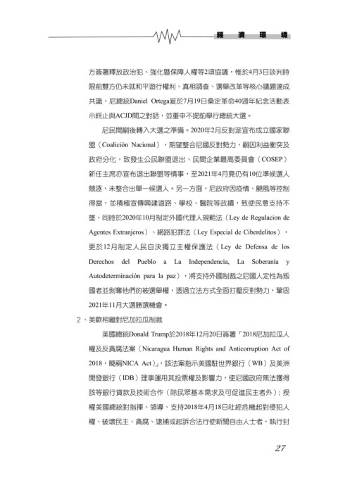 2018,簡稱NICA Act)」,該法案指示美國駐世界銀行(WB)及美洲
