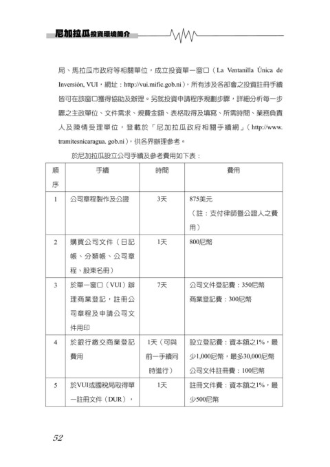 Inversión, VUI,網址:http://vui.mific.gob.ni),所有涉及各部會之投資註冊手續