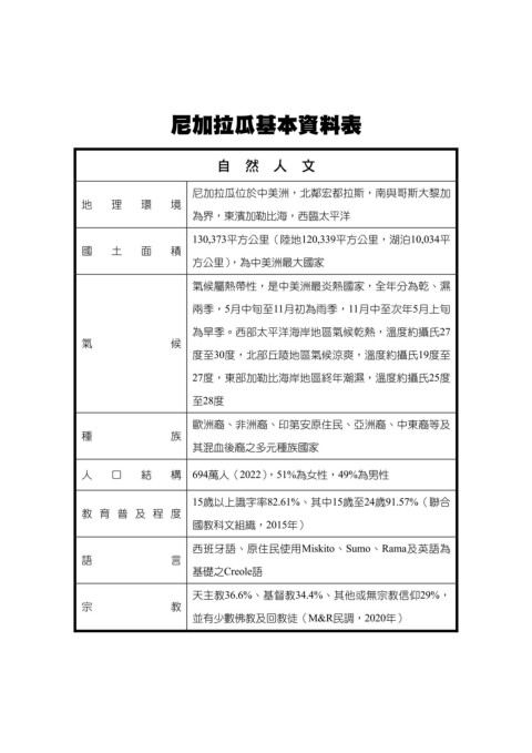 尼加拉瓜位於中美洲,北鄰宏都拉斯,南與哥斯大黎加