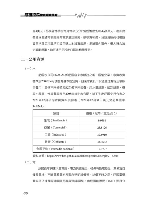 尼國水公司ENACAL係尼國自來水服務之唯一國營企業,水費收費