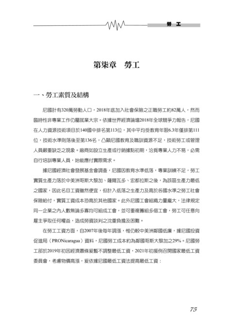 促進局(PRONicaragua)資料,尼國勞工成本約為鄰國哥斯大黎加之29%。尼國勞