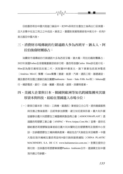 目前墨西哥自中國大陸進口貨品中,約50%係用於在墨加工後再出口至美國,